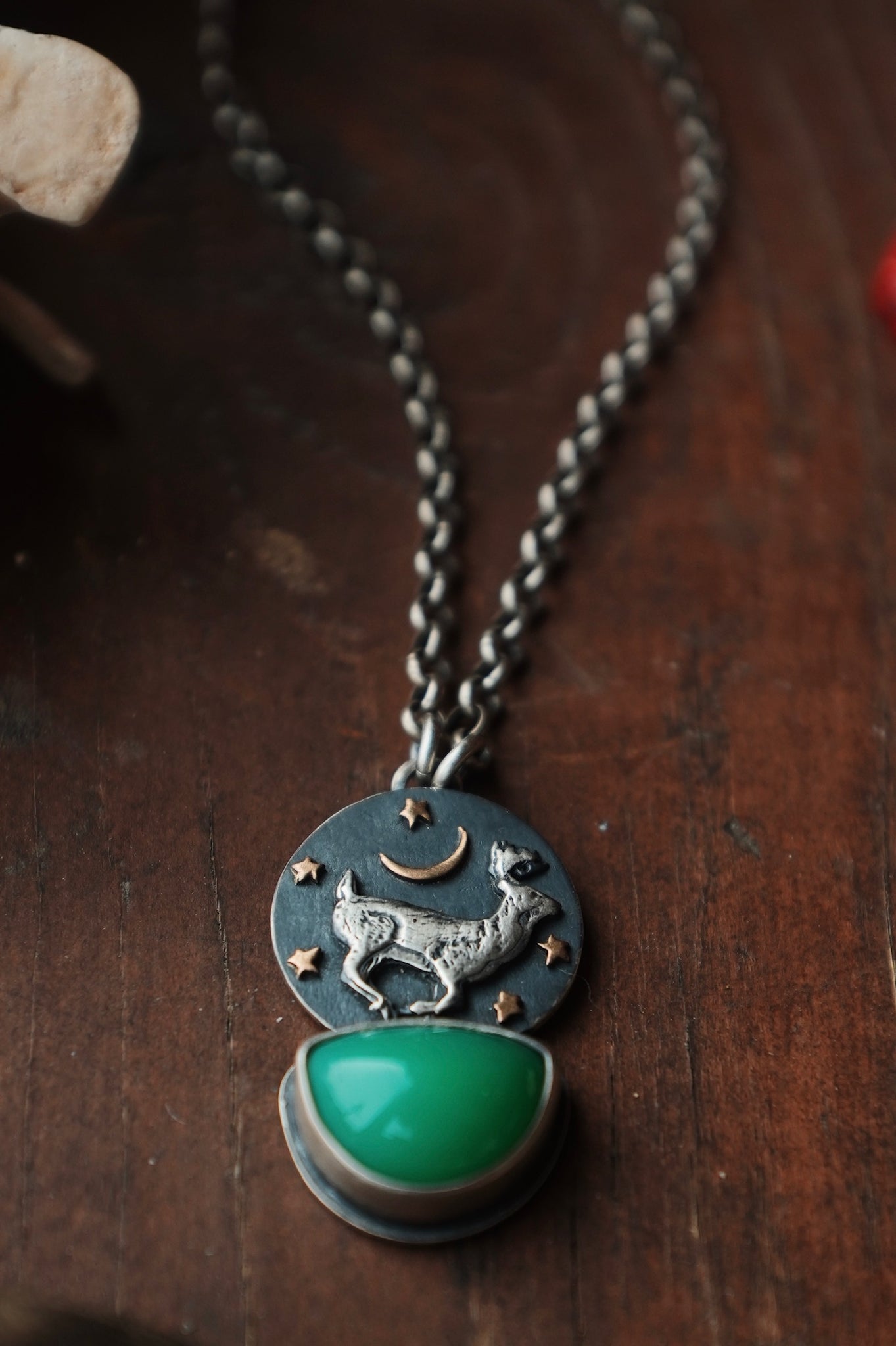 Embrace the wild energy of the season with the Rut Season Necklace. It’s a whimsical design inspired by nocturnal nature—complete with a crescent moon and gold stars—this piece celebrates life's intense moments with playful charm. Whether you're navigating your own season of change or simply drawn to its bold aesthetic, this necklace serves as a reminder that passion and transformation are part of the human experience. Wear it as a conversation starter or personal talisman during times of heightened focus and drive.