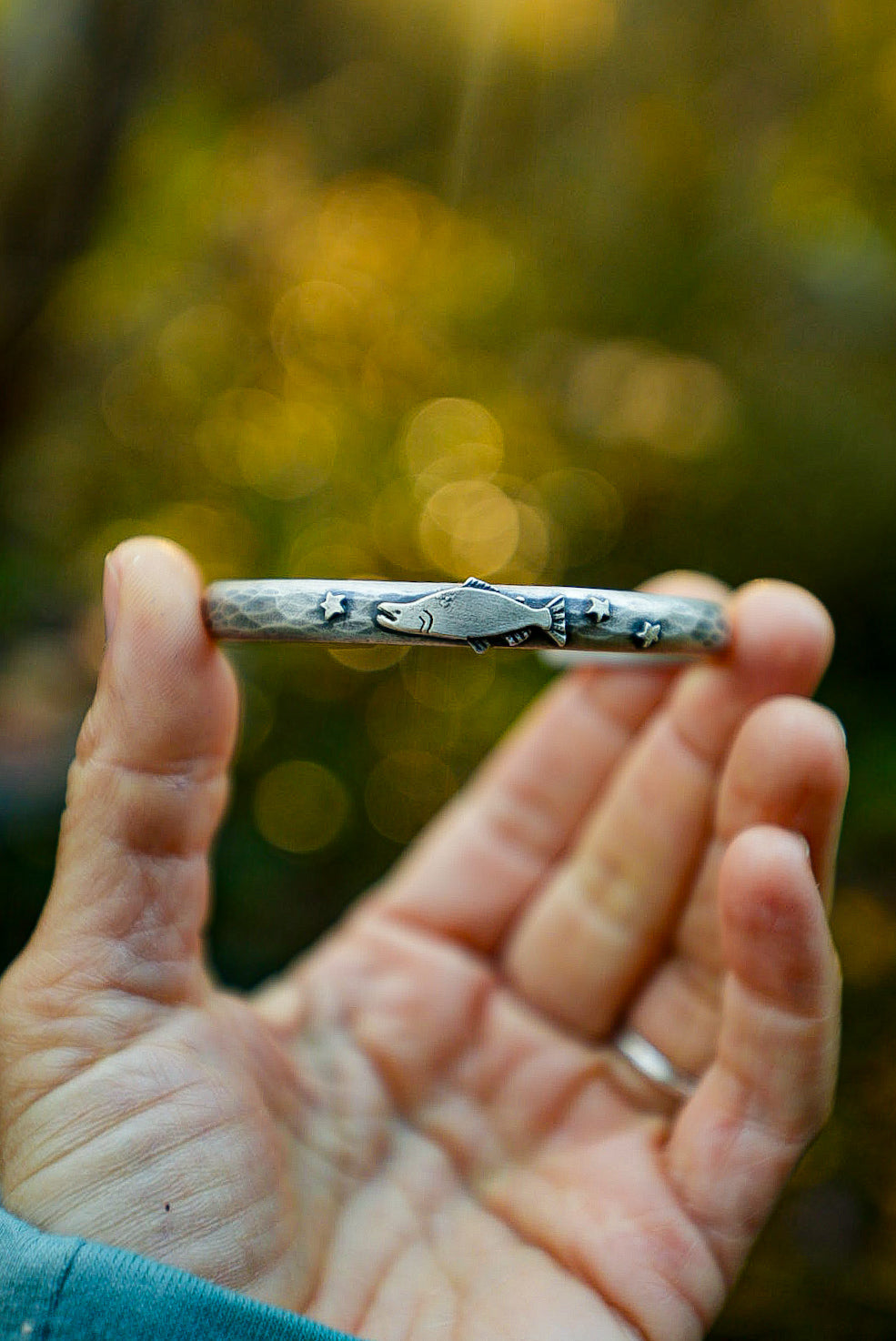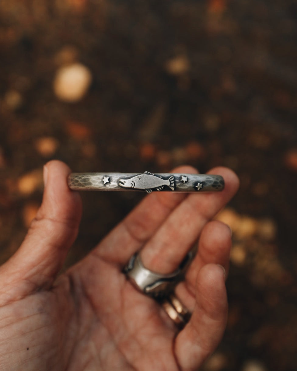This cuff is such a good weight and stacks so well with other cuffs. It has a hammered texture to represent water. The stars add a bit of whimsy to the look.